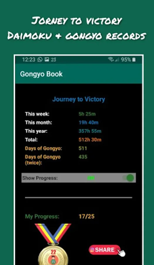 New version with "Journey to Victory": recording of daimoku hours, days of gongyo and collection of 25 achievements (bronze, silver and gold) to encourage your daily practice of faith.