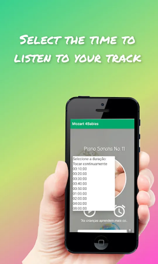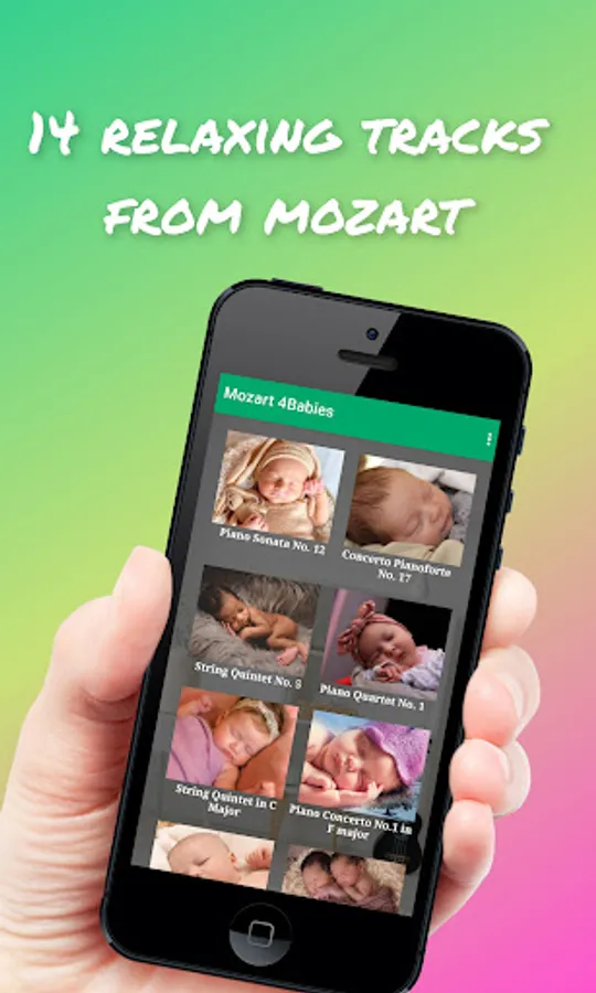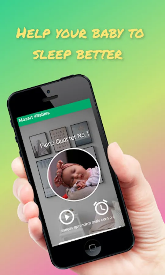 Mozart 4Babies is a free offline application which helps your baby to fall asleep, listening to relaxing Mozart compositions. Mozart songs are known by the beneficial effects in the brain, such improve IQ, promote positive emotions and quality sleep, stimulate memory, specially in newborn babies.