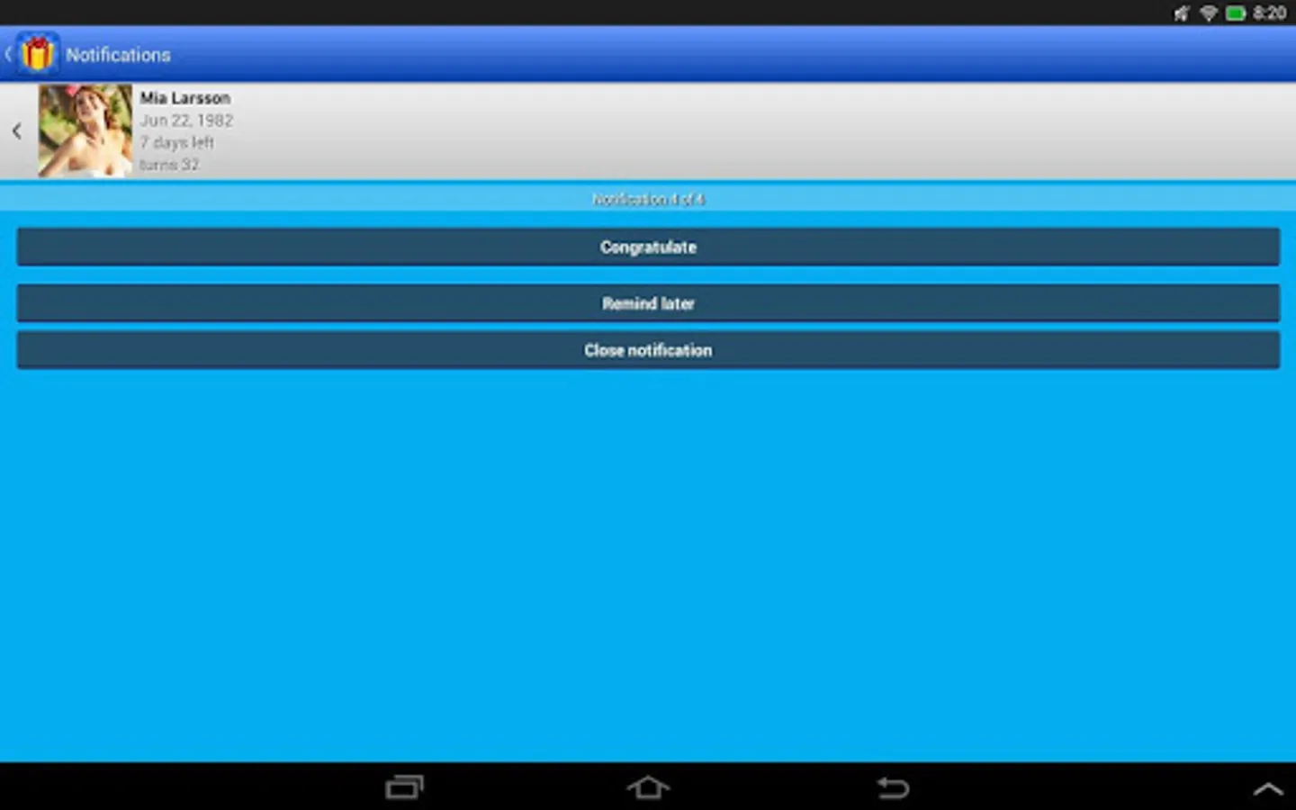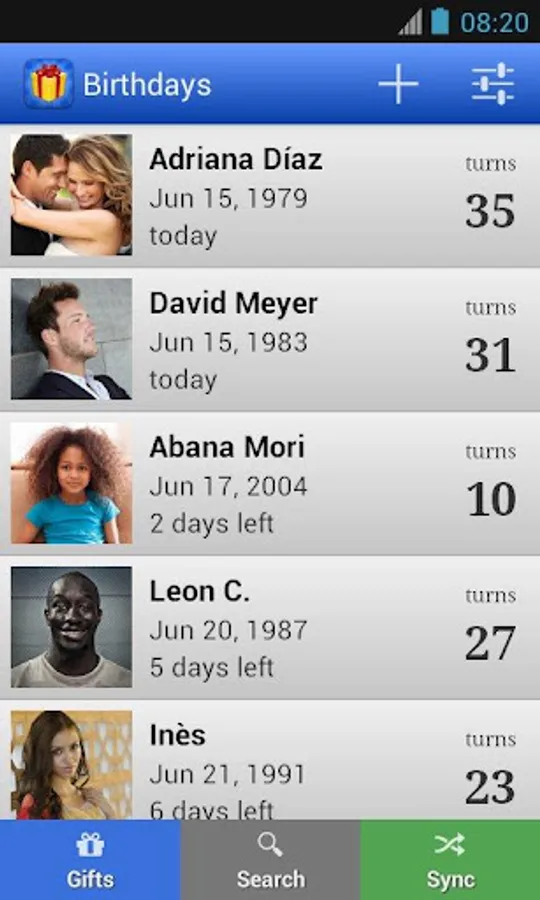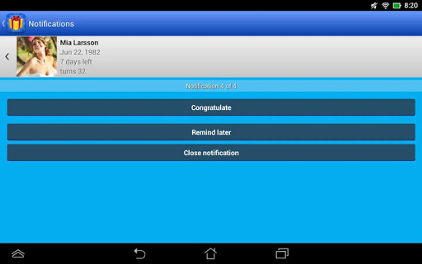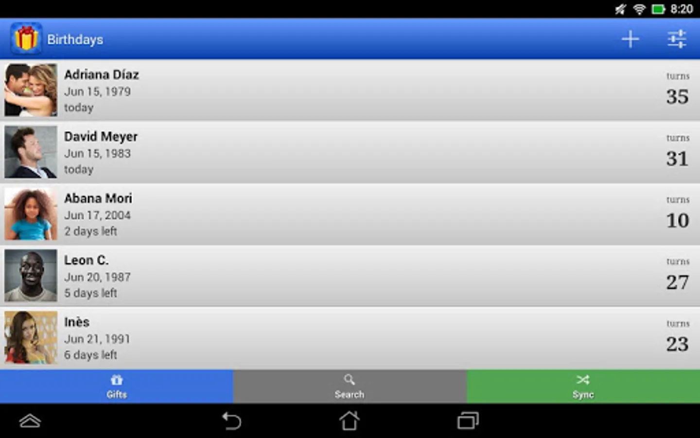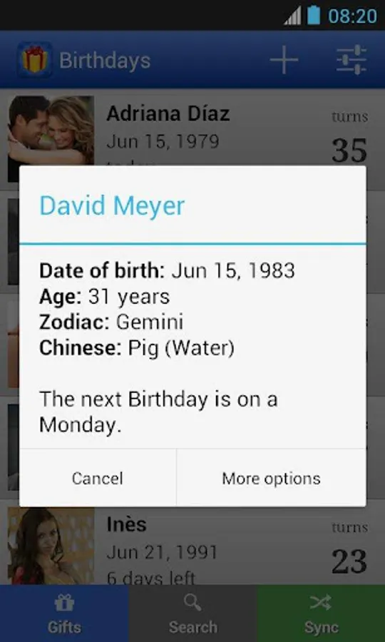 The app automatically calculates your friends’ age, shows their Western and Chinese zodiac signs, and lets you know which day of the week each person’s next birthday is. In addition to that, you will always know exactly how many days are left until each of your friends’ and family’s important dates.
