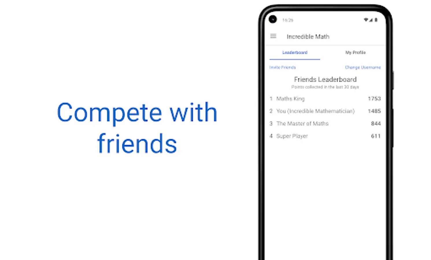 • Keep motivated by competing with friends on the leaderboard
