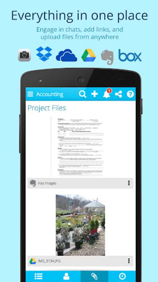 - Attachments - Keep your information together by adding file attachments, images, links, and cloud files to your tasks and projects. Attach Evernote, Google Drive, Dropbox, Box, and OneDrive files, or upload your own files and photos.
