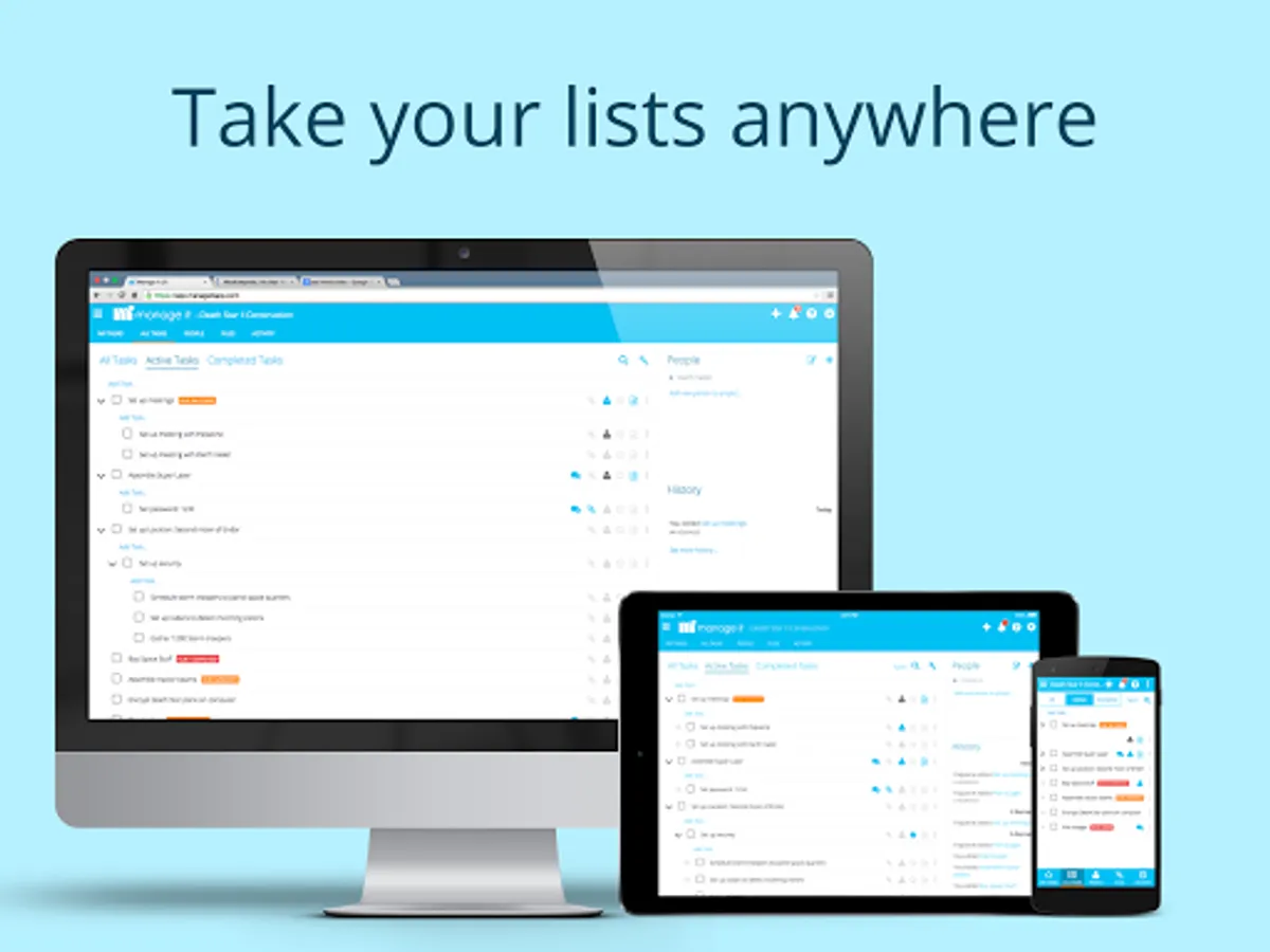 Manage It allows your team to work on the same projects so there’s never a question of “Do you have this task on your list?” or “Did you finish the task yet?” Updates are synchronized to your team’s phones, tablets, and computers in real time.