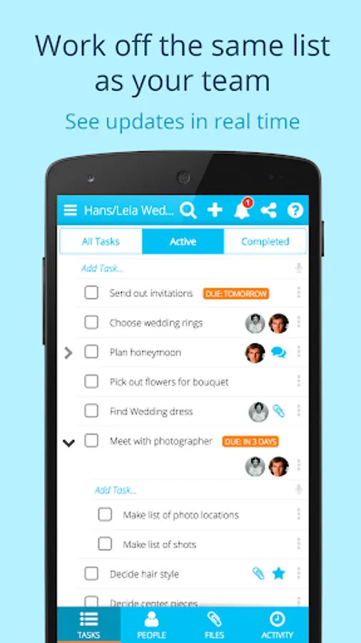 - Real-time Collaboration - See the same tasks that the rest of your team sees. Everyone in your team can see tasks get updated and checked off in real time.