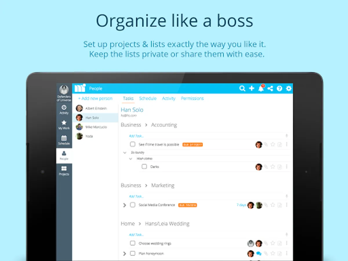 - Customization - Create task lists that make sense to you. It’s easy to create tasks and subtasks (and more subtasks under that). You can rearrange the order by simply dragging and dropping.