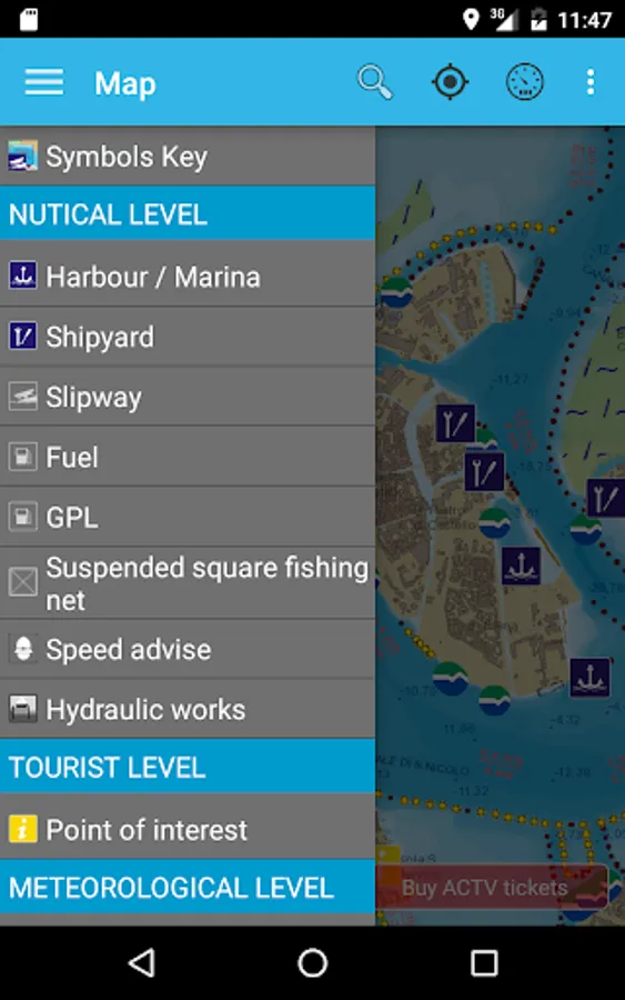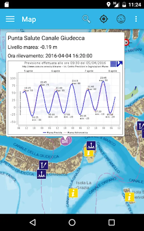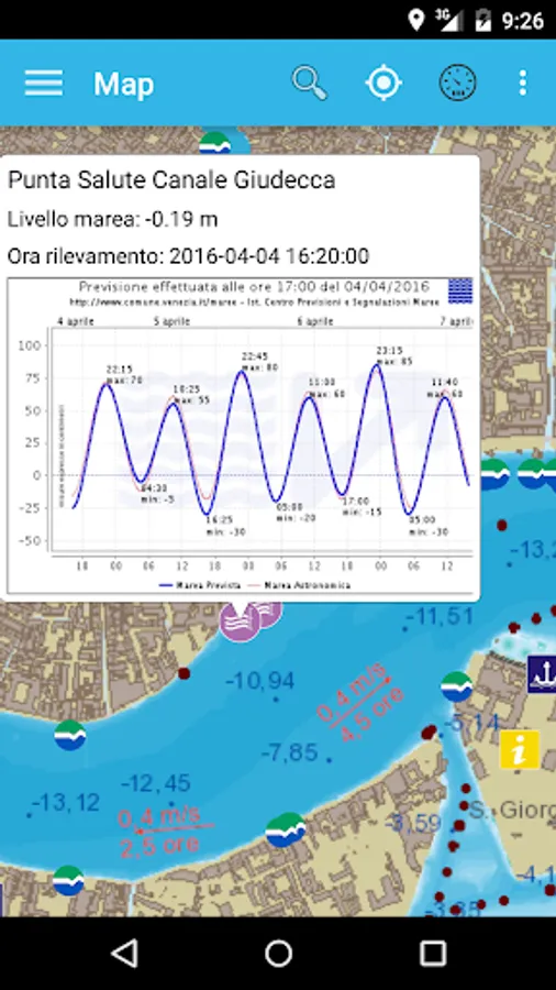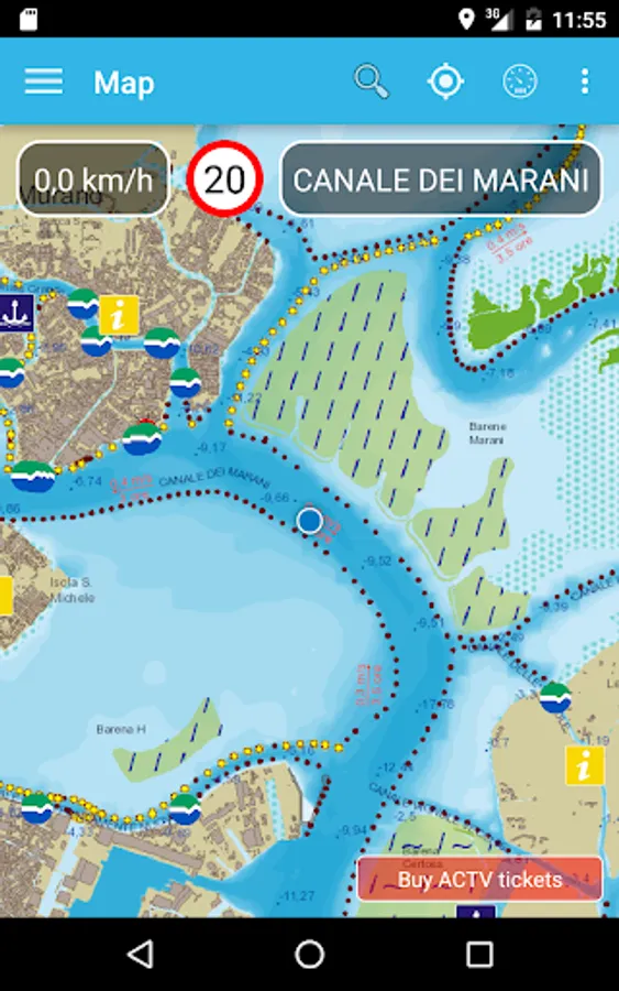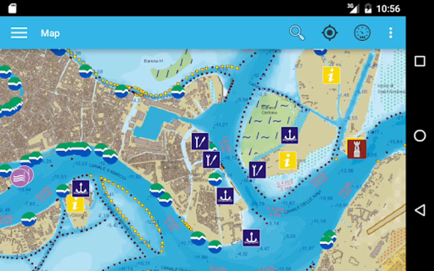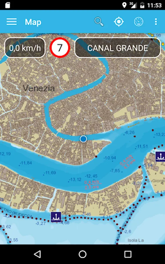 Provided with marinas, harbours, gas stations and other practical informations, the App offers the sailor a practical speedometer displaying the allowed maximum speed in the canal that is being navigated and the name of the canal itself. The App shows as well when the maximum speed is exceeded.
