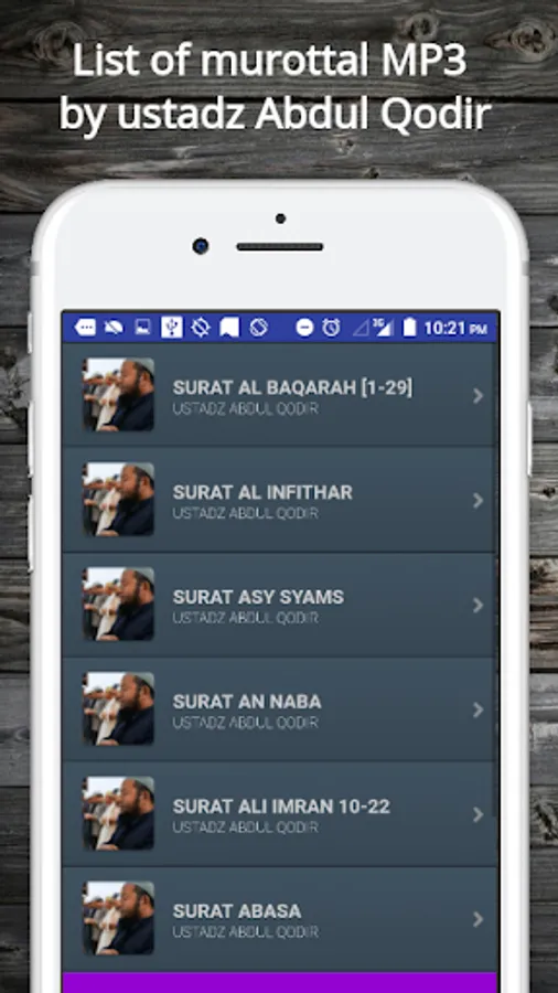 Murottal or offline reading Quran cleric Abdul Qadir is a collection of MP3s that you can enjoy without needing an internet connection, with a very beautiful voice and touch the soul. Sometimes he is also to sob emotion and paused before resuming his reading.