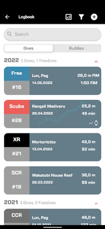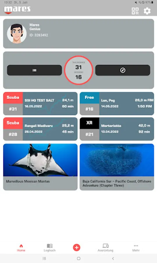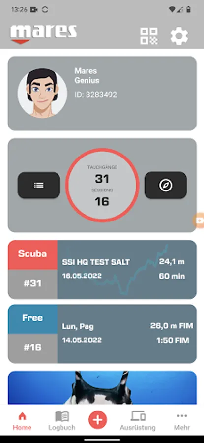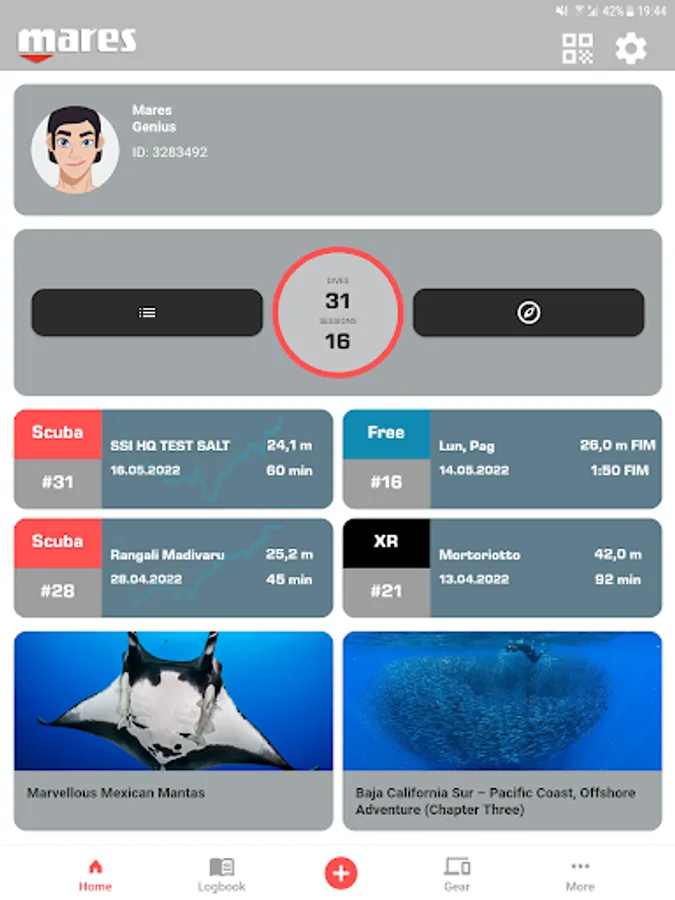 DIVE BUDDIES: Easily add your dive buddies via QR code or manually in the app. Share your best dives and most exciting animal encounters with friends using the Mares app.