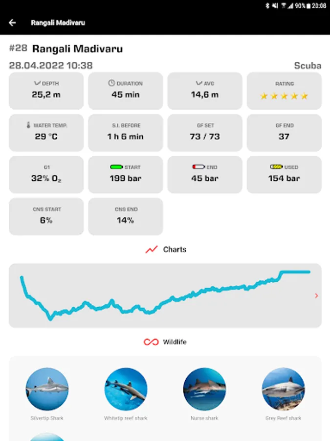 STATISTICS: All your dives and data can be seen at a glance, including your longest or deepest dive, your average dive time and more!