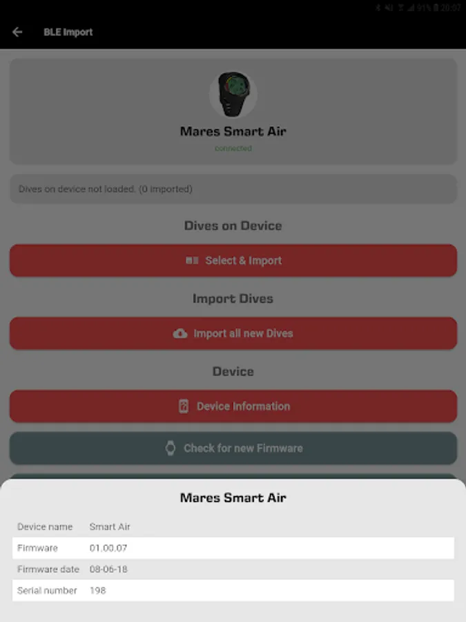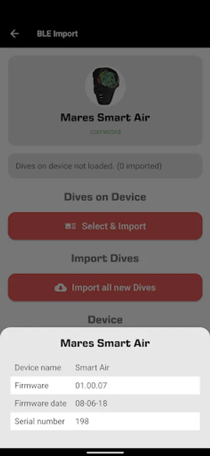 FIRMWARE: When you connect your dive computer to the app, you will be able to confirm if you have the latest firmware. As soon as it is outdated, you will receive a message regarding the newest firmware to download.