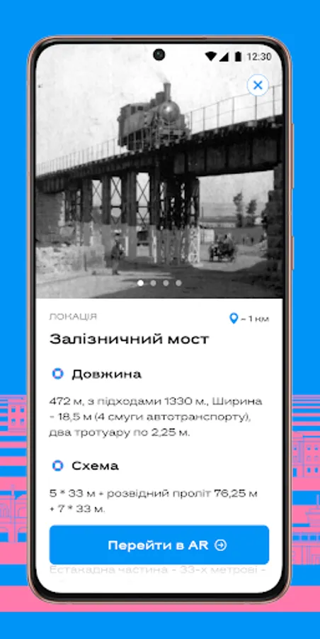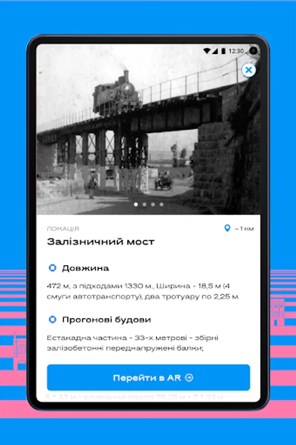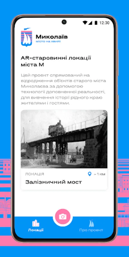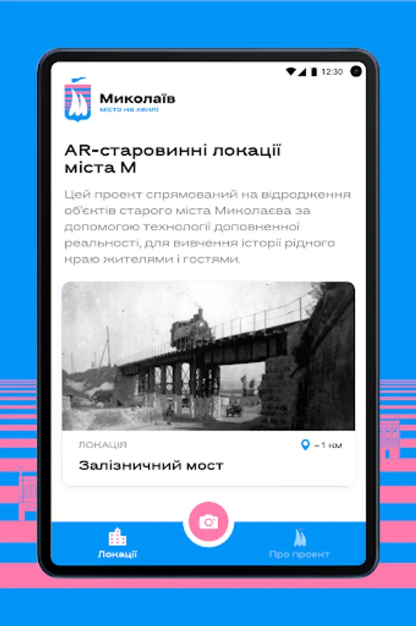The project is aimed at reviving the objects of the old city of Mykolayiv with the help of augmented reality, so that citizens and guests of the city can study the history of their native land.