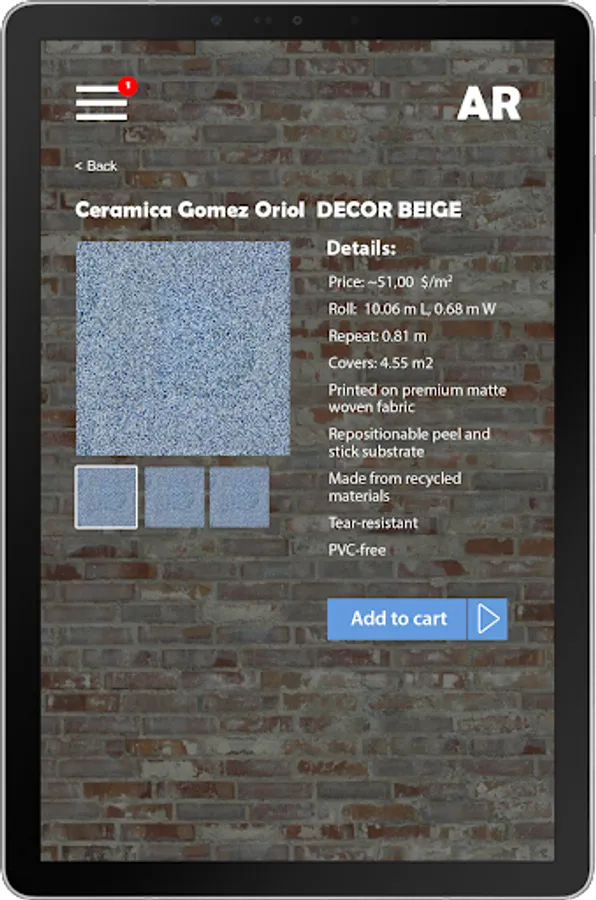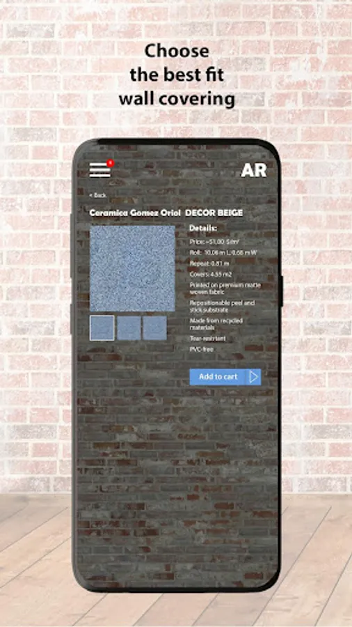 You are able to choose the covering, find out how it looks in your room, how many rolls or pack are required, how much it costs. And order that just tapping the button in your smartphone.