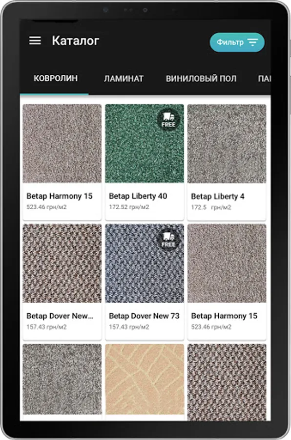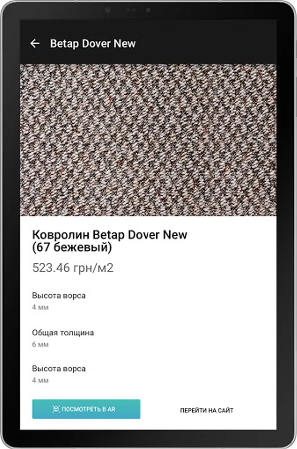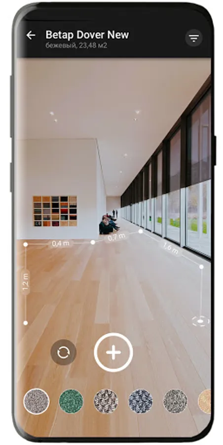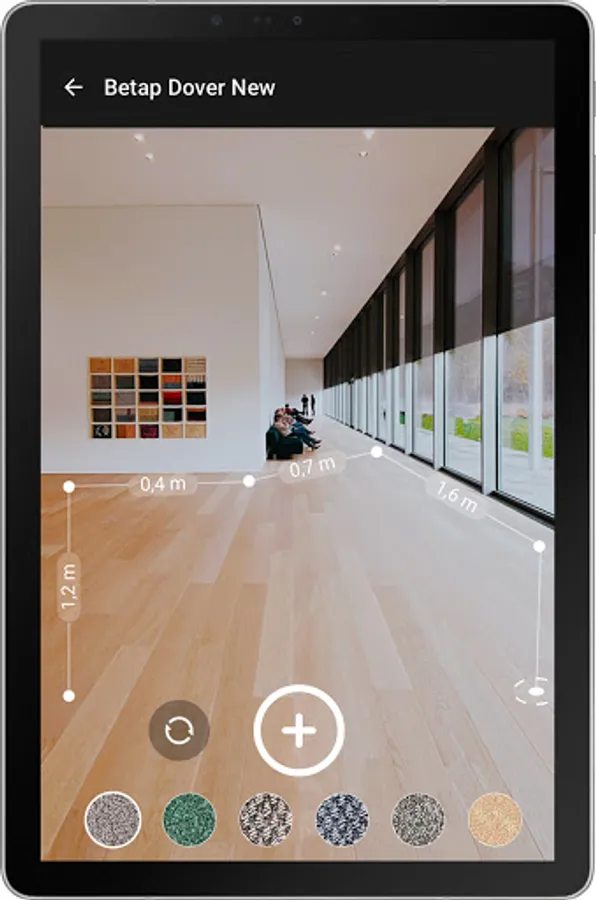 The application allows you to design your interior design by trying on a variety of materials on the floor, including carpet, linoleum, laminate, vinyl flooring, artificial grass for courts and terraces, and others available in the database.
