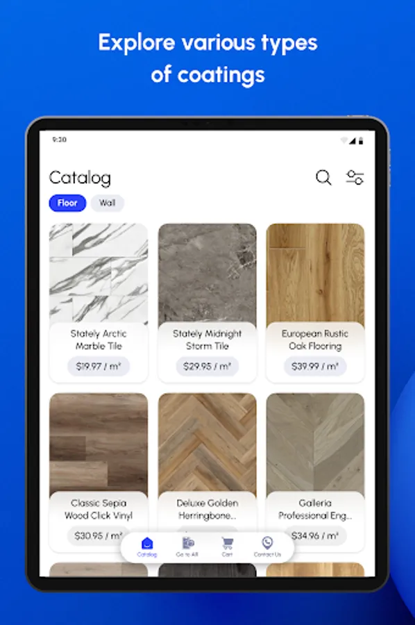 1. Explore the range of floor/wall covering.