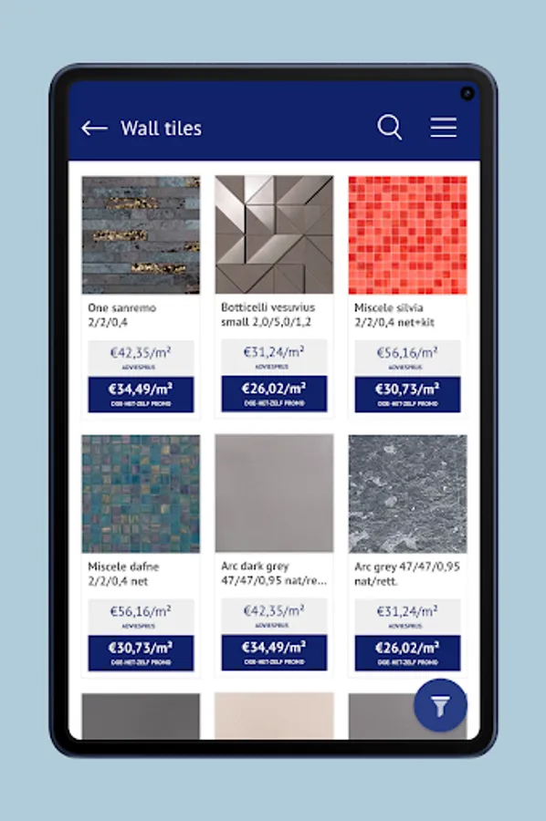 View our extensive tile collections online. You can filter by color, style, material and much more. You can integrate almost every tile from our collection into your interior. So much choice!