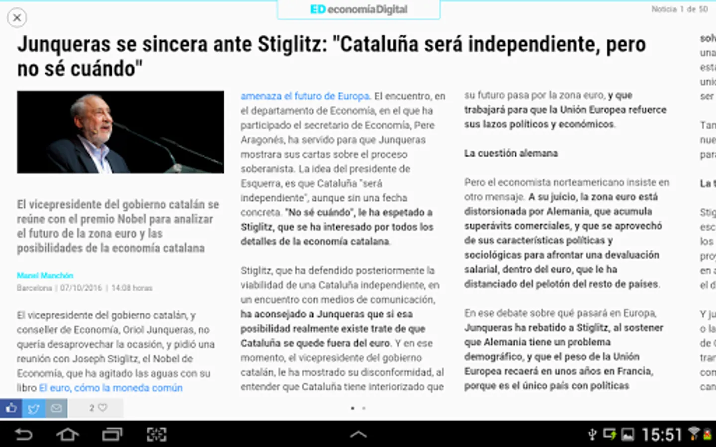 The application of Digital Economy gives you a quick, convenient and free to read comfortably on smart phones and tablets the information necessary: no one else tells you. Keep up with the latest news, sharpest analysis and the bravest comments. Information prepared with rigor and honesty from Barcelona, Madrid and A Coruna for the most intuitive mobile environment.