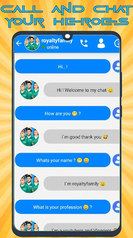 the royalty family Call is an excellent application directed to fans of the royalty family game. It is easy to use choose your option the royalty family call video or Voice and have a chat conversation with your Hero .