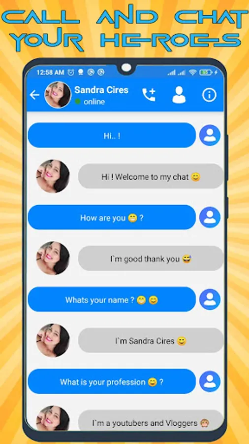 Sandra Cires Call is an excellent application directed to fans of Sandra Cires game. It is easy to use choose your option Sandra Cires call video or Voice and have a chat conversation with your Hero .