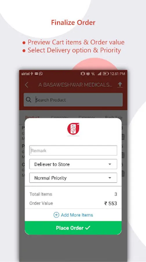 Marg eOrder is an Android-based mobile app for distributors. It is designed to facilitate their