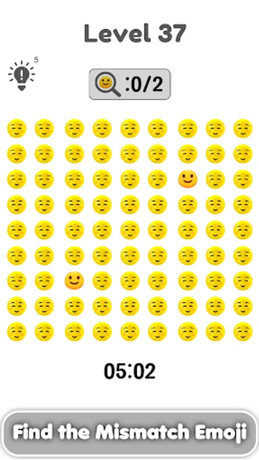The game typically consists of multiple levels like finding a picture, spot the letter, Find the different emoji, and many more.
