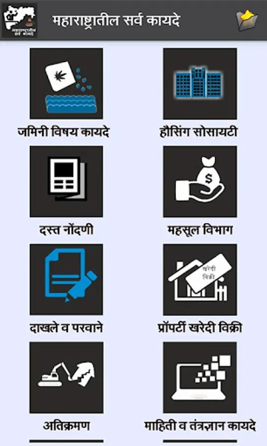 महाराष्ट्रातील सर्व कायदे या अँप्लिकेशन मध्ये आपले सर्वांचे मनापासून स्वागत आहे.