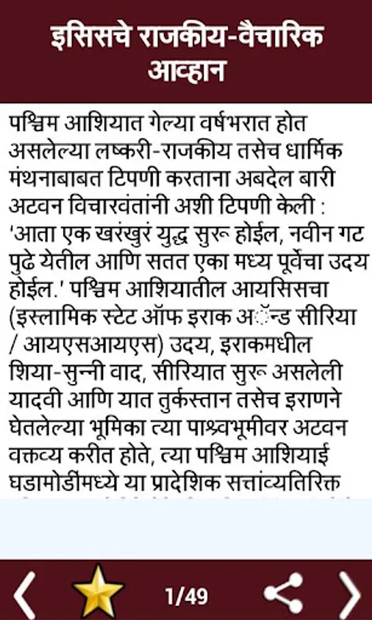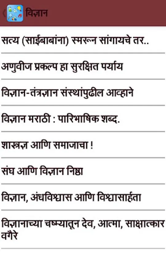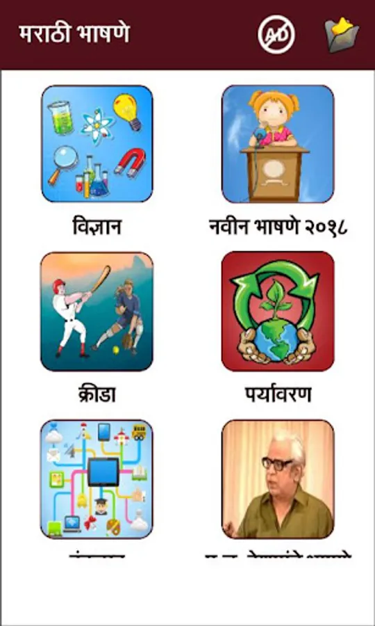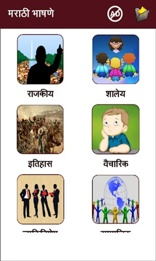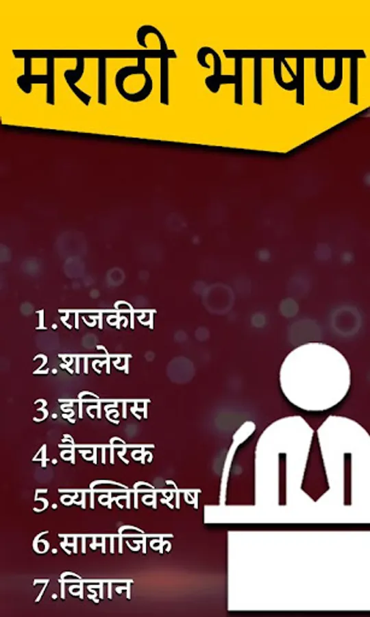 Marathi Speech app includes all different topic related speeches in detail. Here are lots of speeches in each category also information of how to give speech and all starting to ending of speech related tips. People can easily use this app. this app is very useful for all peoples but specially to students for their competition and all. Here people can get any topic related speech neatly.