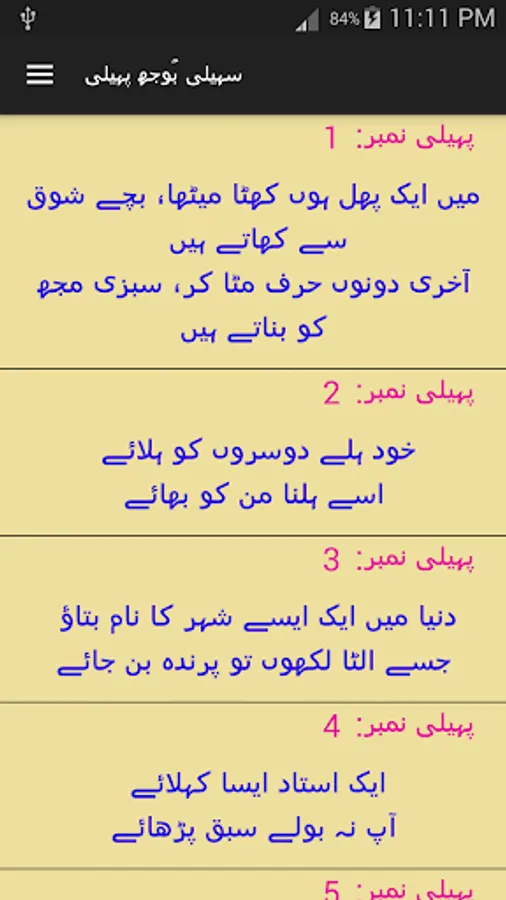 This app contains Pehaliyan in Urdu language and very easy to use.