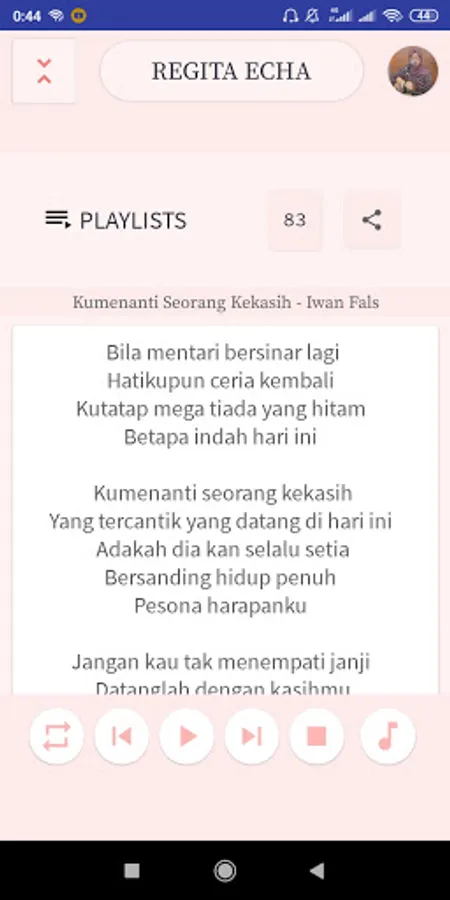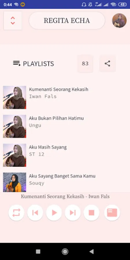 This application contains a collection of the latest and most complete Regita Echa Cover songs. Come on, enjoy this song from Regita Echa anywhere and anytime.