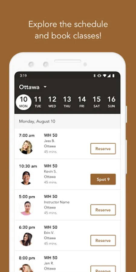 mobile App you can view class schedules, buy rides, sign-up for classes, view ongoing