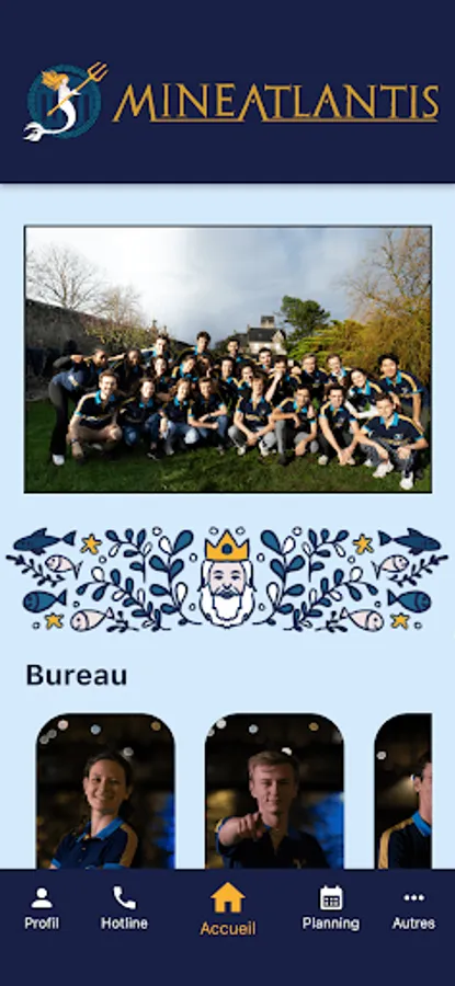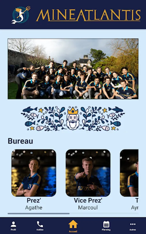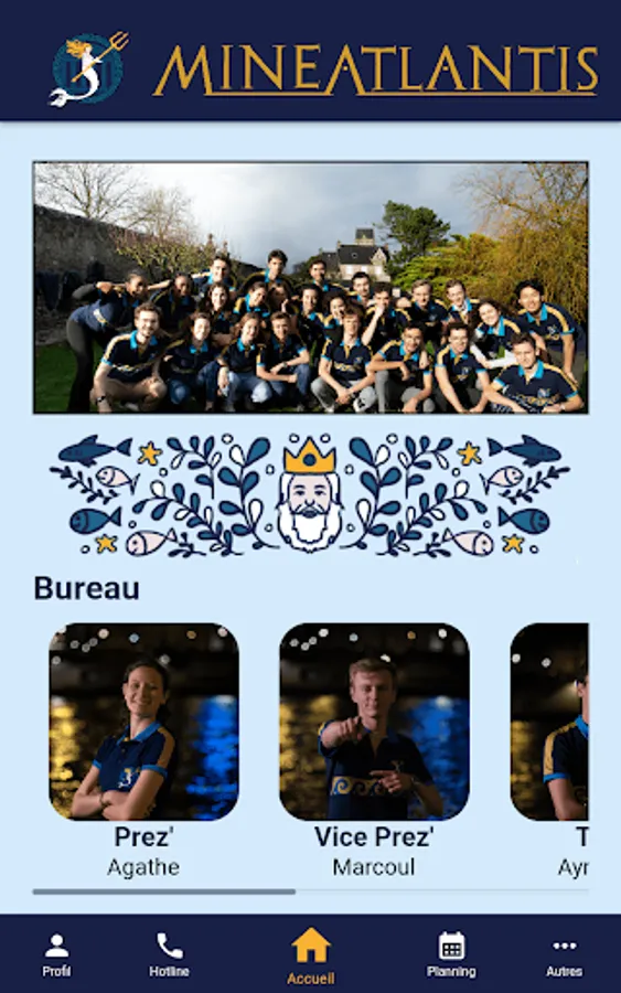 This application is planned for the Mineatlantis campaign, a list for the student office of the Mines de Paris, it will allow you in particular to have access to the essential information of the members of the list, the planning of the campaign, but also to be able to order serenely everything you've always dreamed of with our hotline, and you can even enjoy the game AtlanGame which will entertain you at any time of the day (and night)