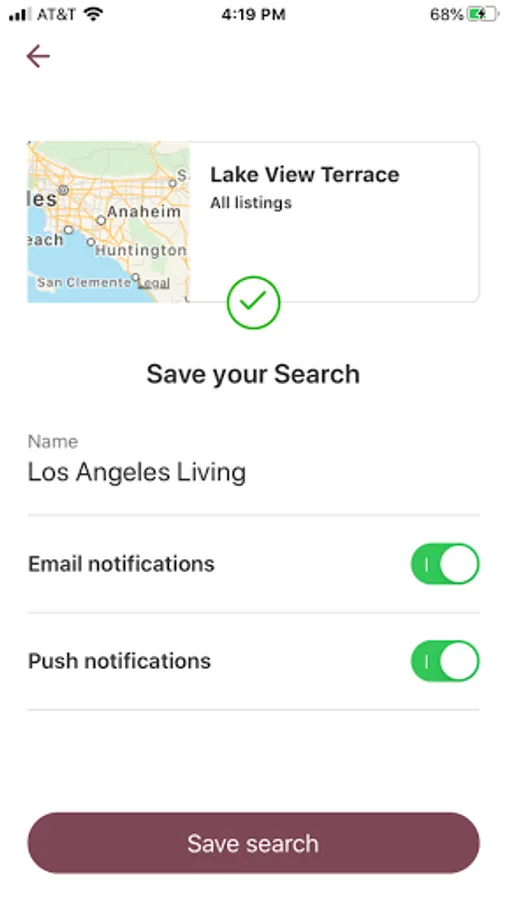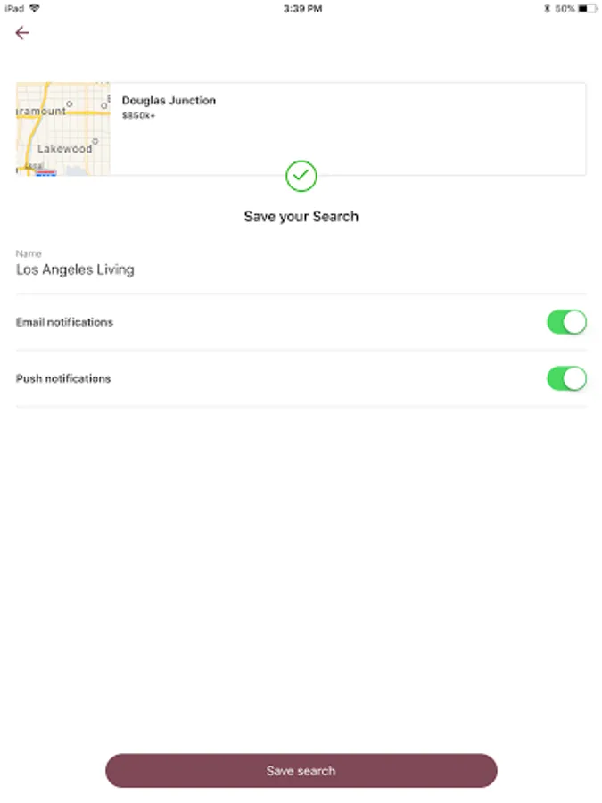 - Receive notifications from saved searches and favorited listing updates