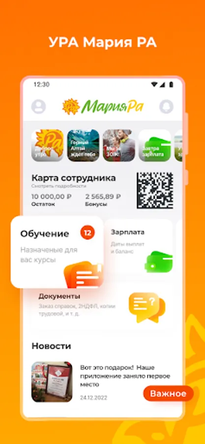 The application was created for employees of the multidisciplinary holding "Maria Ra", available for employees of any region where the company is represented (Altai Territory, Altai Republic, Novosibirsk Region, Tomsk Region, Kemerovo Region) and helps employees use the Company's services as quickly as possible without unnecessary bureaucratic obstacles.