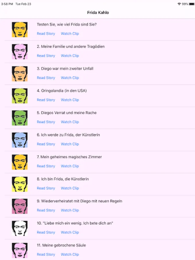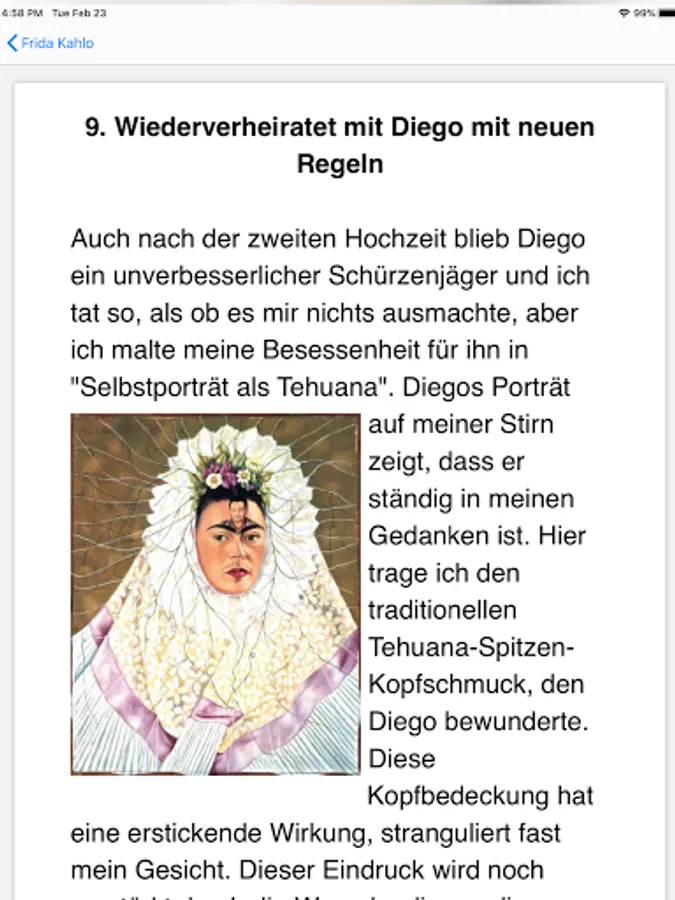 This Frida Kahlo app focuses on Frida's work, love, suffering and passion.