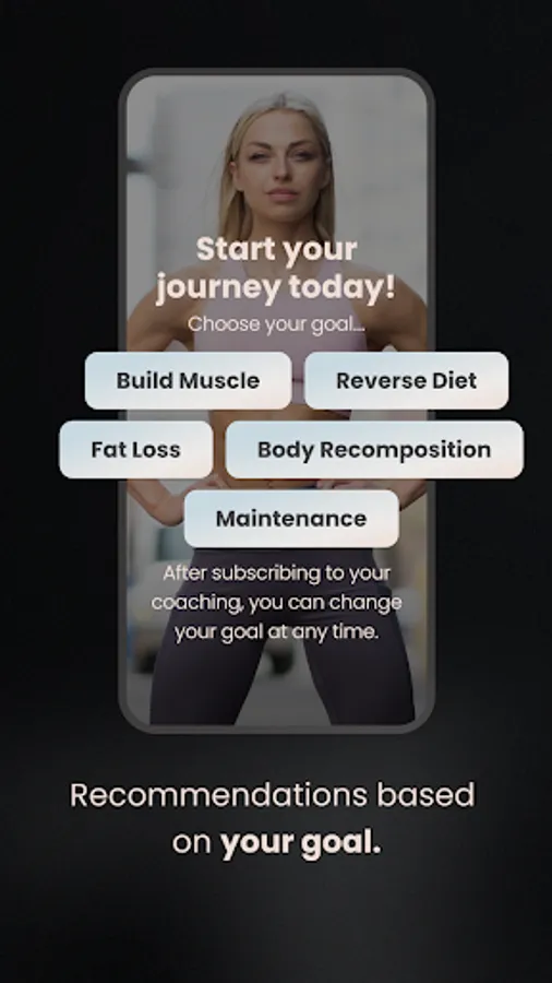 • Choose your goal: fat loss, building muscle / boosting your metabolism or maintaining your current weight