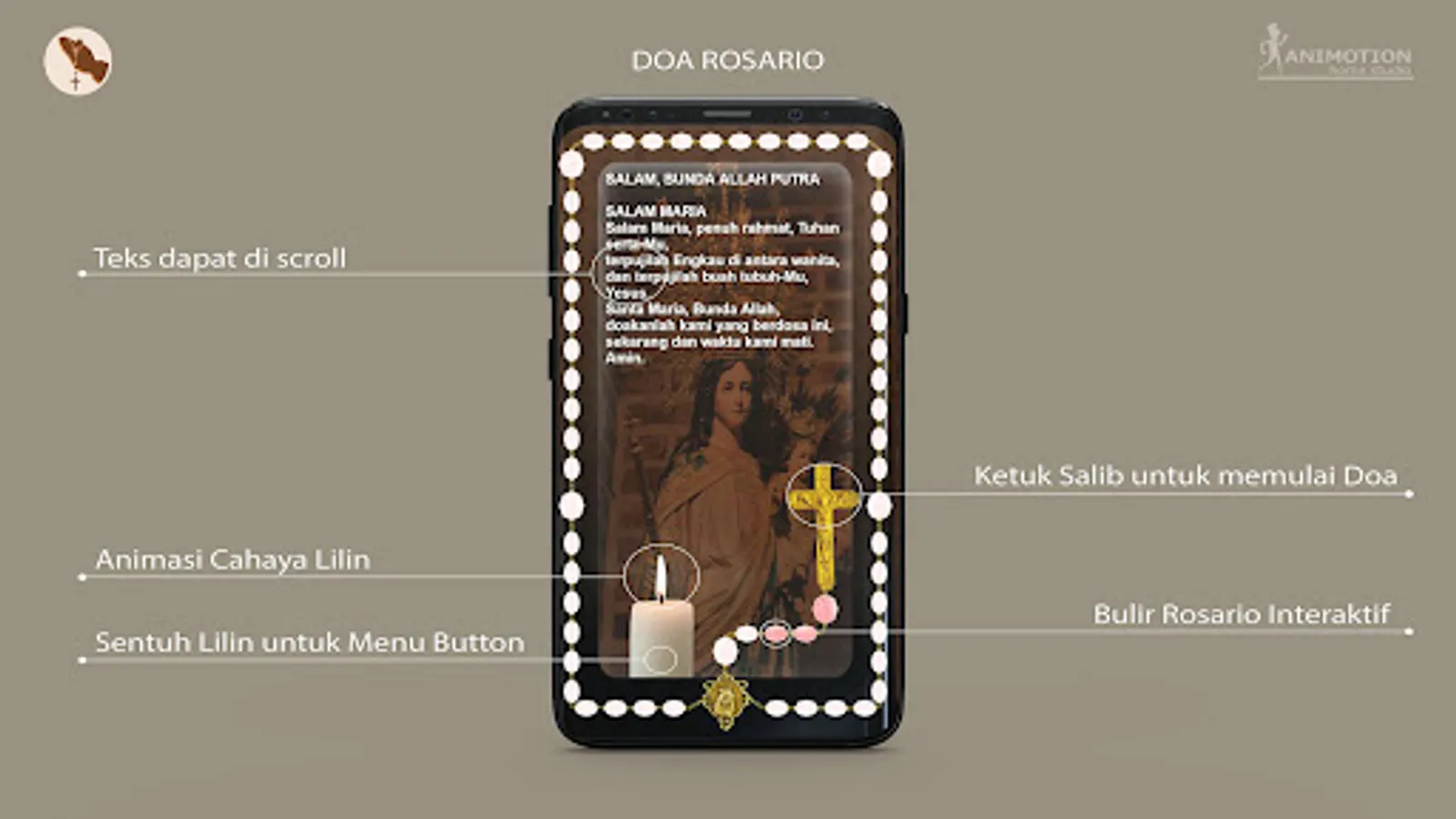 I made this prayer application to be used for children or adults who are not or new to Catholic prayers. In this application there is a special page for learning the rosary prayer and also several pages for special prayers. As for this application, I made it possible to use it as a reminder when we are busy in our daily lives with work or whatever.