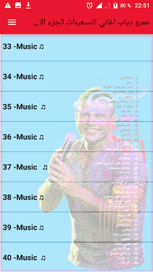 A free application for all the songs of Amr Diab in the era of the nineties. This application consists of two parts. This is the first part. And look forward to the second part from us soon, God willing.