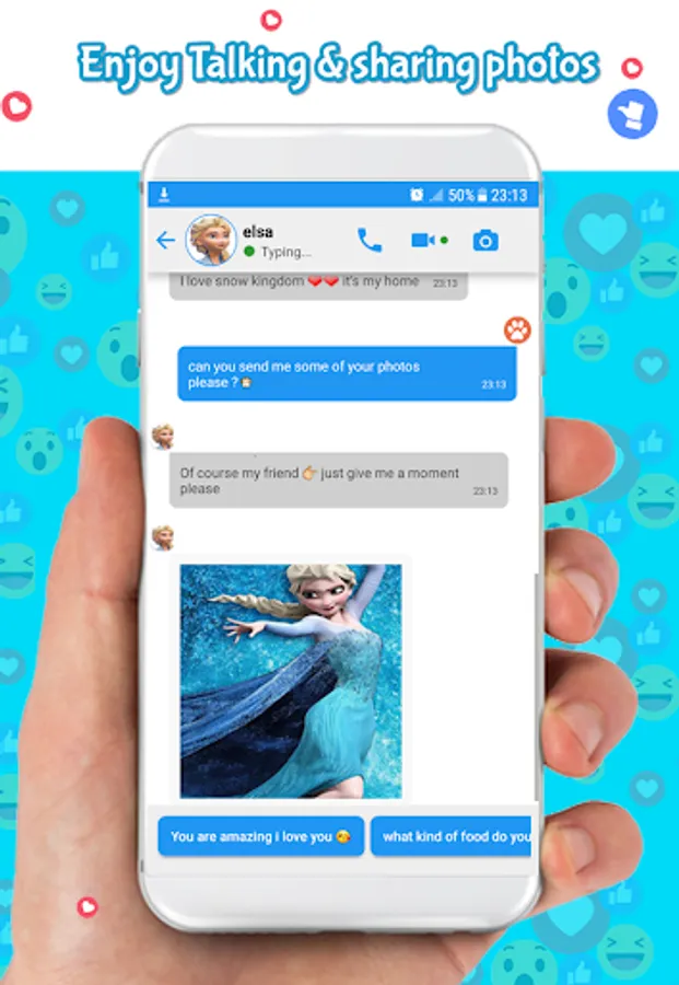 You can not only call but also you can send a message to elsa princess. and you will receive text messages and after that, you can also start live video with Princess_Elssa!
