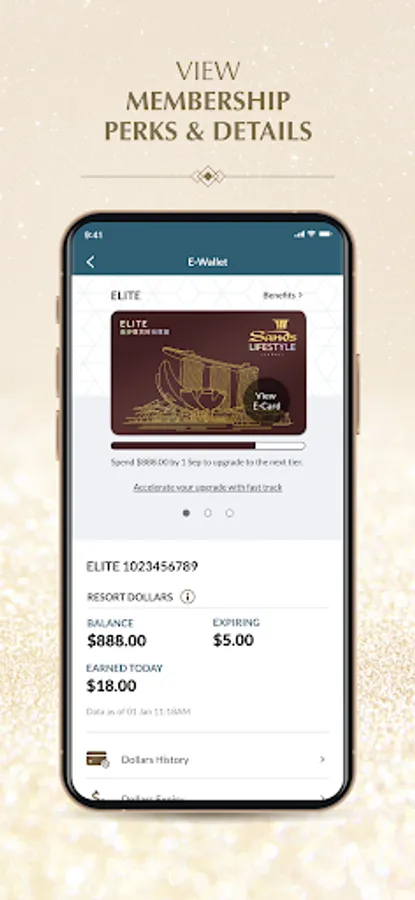 Keep track of your Sands Reward Dollars balance on the go as you earn and redeem with your Sands Rewards e-Card.