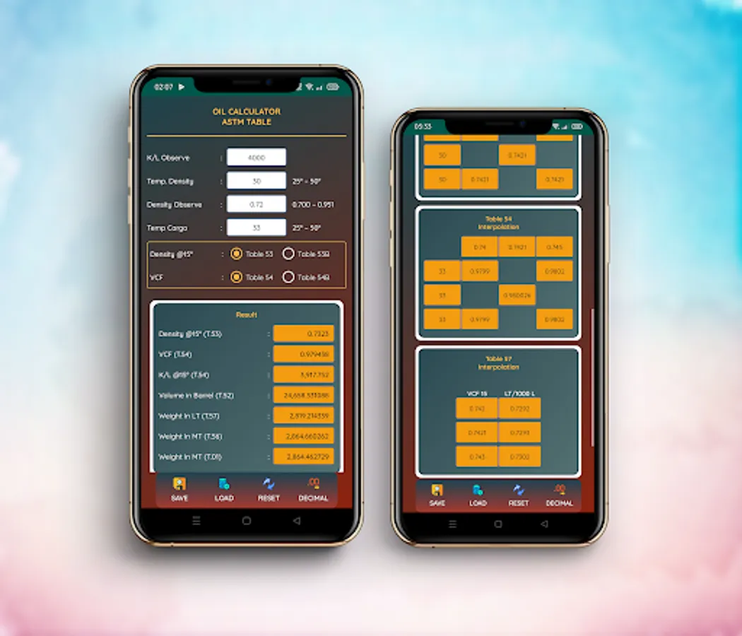 This application is designed to calculate density corrections observed at 15 degrees C and volume corrections up to 15 degrees C toward density at 15 degrees C or VCF according to ASTM Standard Guide D-1250 for Volume VIII Oil Measurement Tables Table 53B and Table 54B.