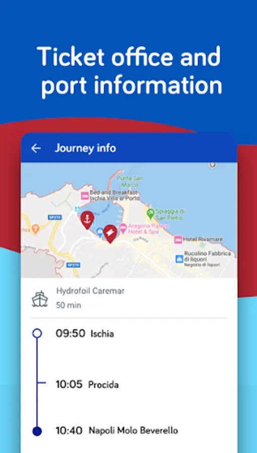 Gulf of Naples: Casamicciola Terme, Forio, Ischia, Monte di Procida, Napoli Molo Beverello, Napoli Porta di Massa, Napoli Mergellina, Pozzuoli and Procida.