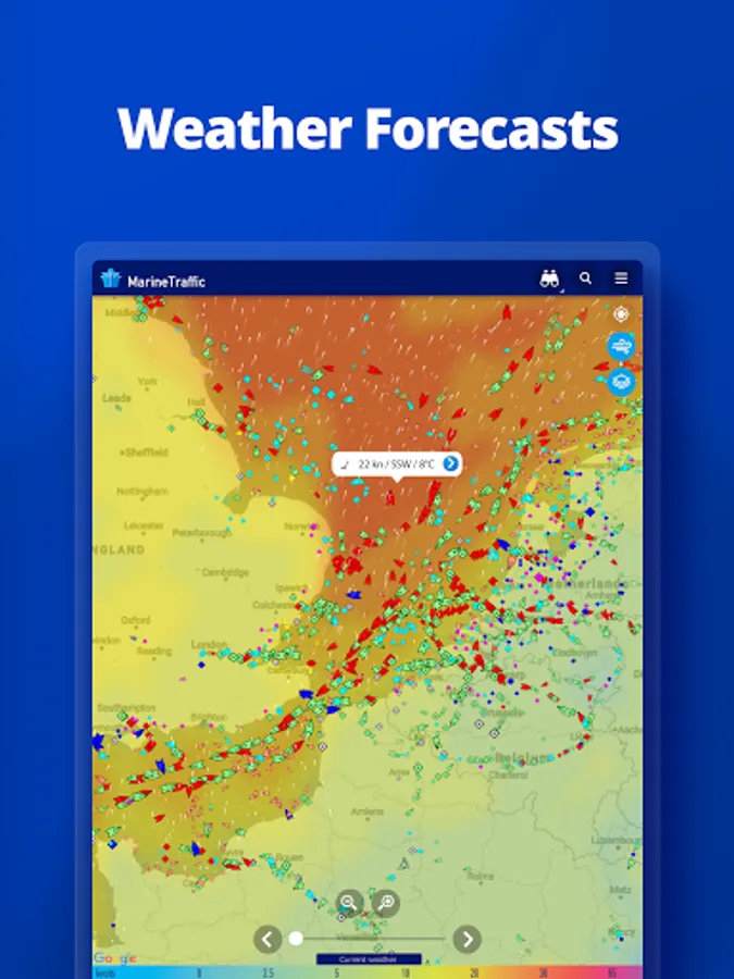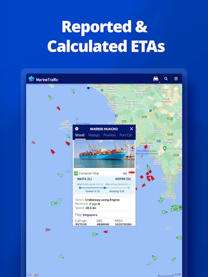 Connected to the largest network of land-based AIS receivers, the app covers most major ports and shipping routes.