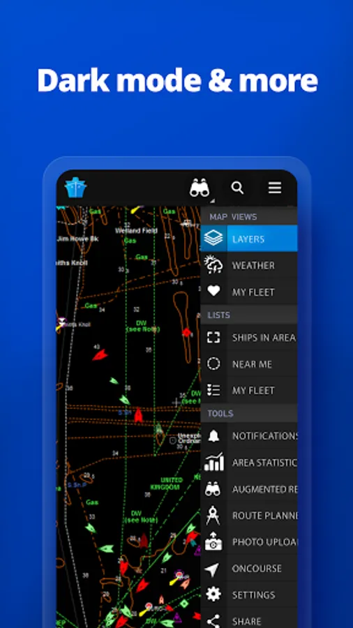 • Identify vessels around you at a glance with the Augmented Reality tool.