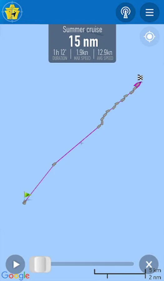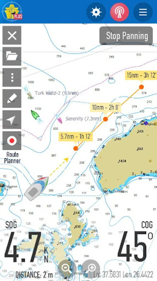 - Additional information during sailing (time to next waypoint, next ETA, final ETA, distance & bearing to waypoint)