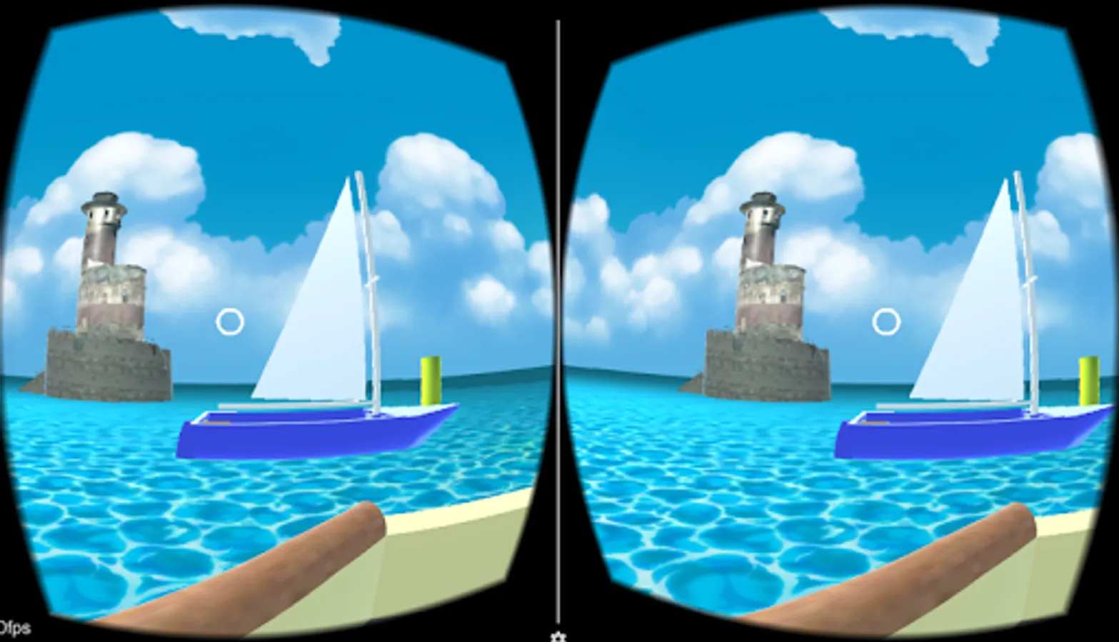 From the lighthouse, you can teleport to two alternative locations. You can teleport to the moving sailboat or to the one that is anchored. To teleport, simply look at a boat and use a Cardboard trigger button to select.