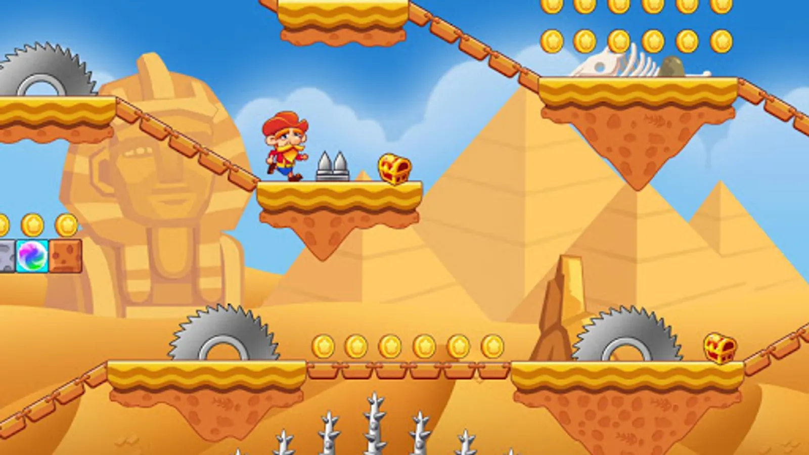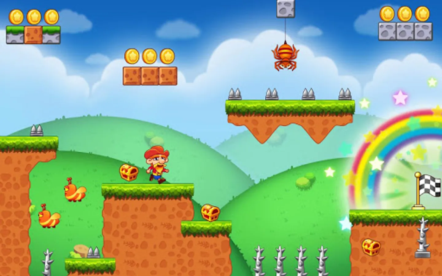 Jabber’s ancestral Gem was robbed by evil Monster. For taking the gold coins back, Jabber start his adventure.