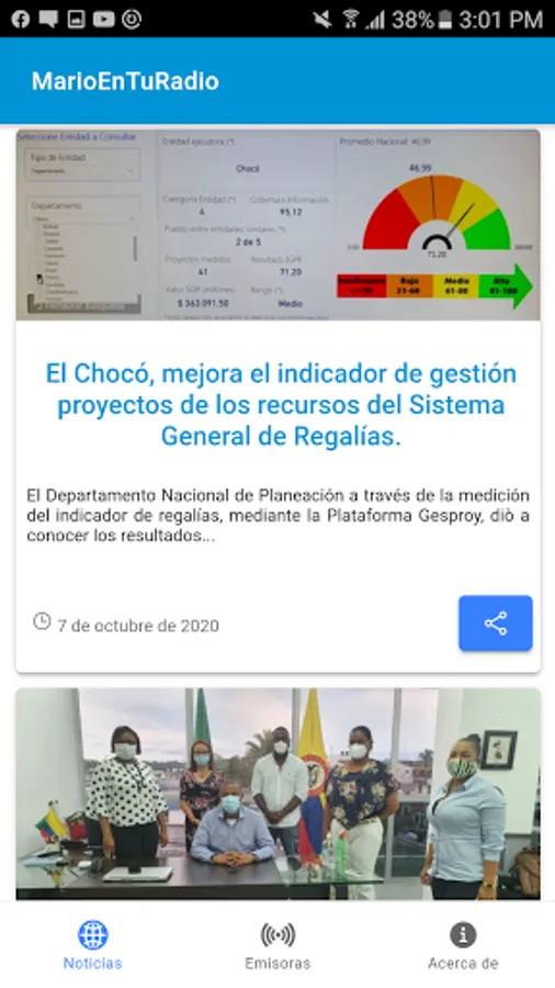 The Digital Station MarioEnTuRadio, was created by the communicator and public relationist, as well as territorial public administrator, Mario Luis Benítez Arboleda.