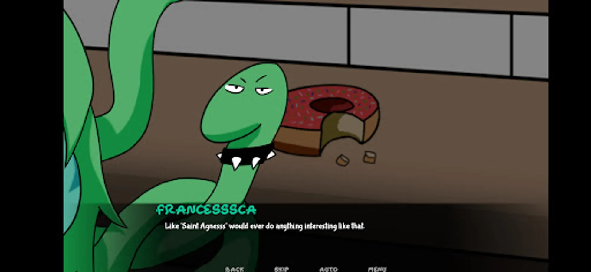 After waking up from a longer than expected nap, the hair snakes awaken to find one of them has taken a bite out of a donut their Medusa had gotten from her favourite bakery. Help Agnesss find out which one of her sisters are responsible, before Melissa wakes up and they all get in trouble over it!