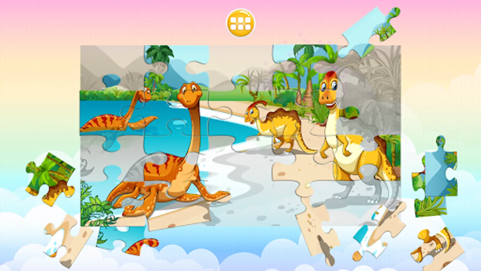 This free dinosaur game works like a real jigsaw puzzle for kids and adults. When you select a piece it stays on the board even if you place it incorrectly, and you can move the piece until it slides to the correct place.