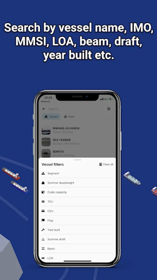 Search for vessels by vessel name, IMO or MMSI, or port names and type. Combine searches with more detailed info such as LOA, beam, draft and year built. Search for ports by port name, country or cargo type.