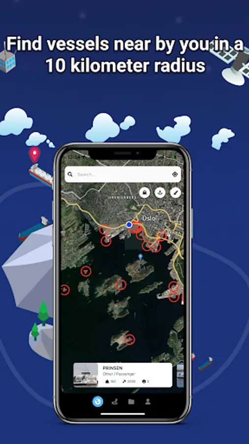 Turn on your location and find all the vessels nearby you, in a radius of 10 km.