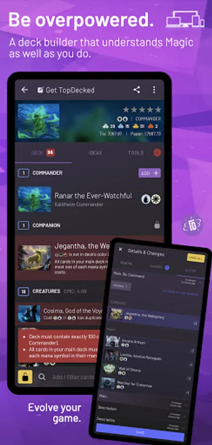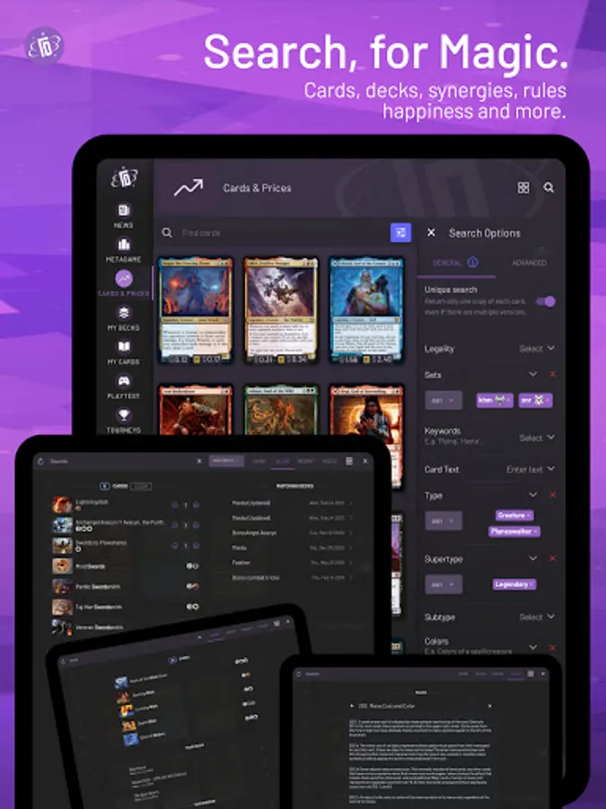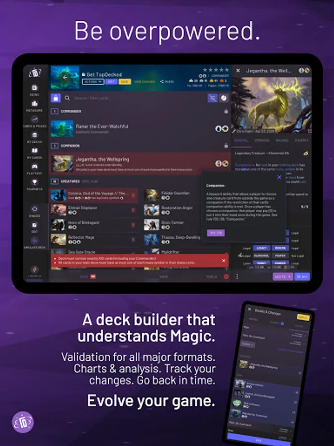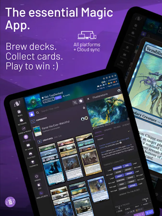TopDecked is the essential Magic app for brewers, collectors, traders, competitors, and fans. Simulate up to four decks on a virtual battlefield, get recommended cards, test new ideas, and keep up with the latest decks and strategies. Run tournaments at home. We’re on your side of the battlefield - your portal for everything MTG.
